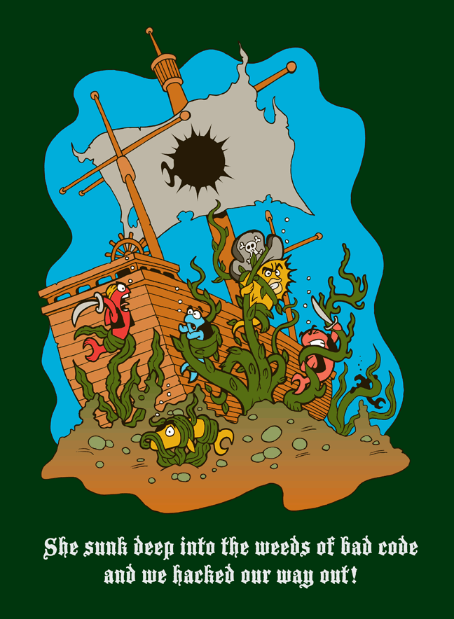worn with pride. Every shirt contains at least one developer in-joke,