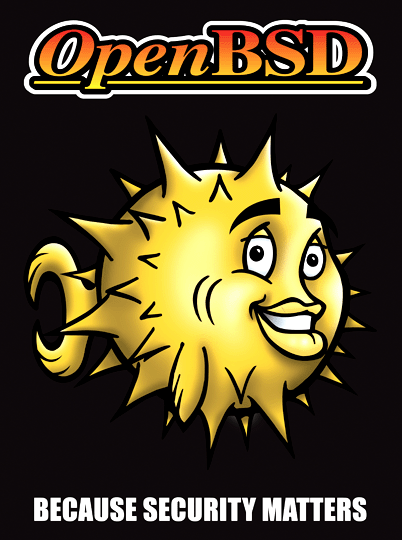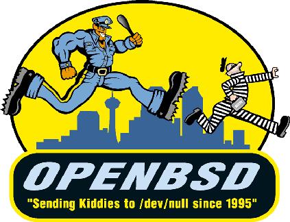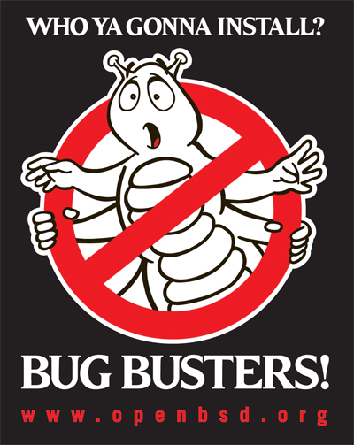 "OpenBSD 3.8" on a brown shirt.